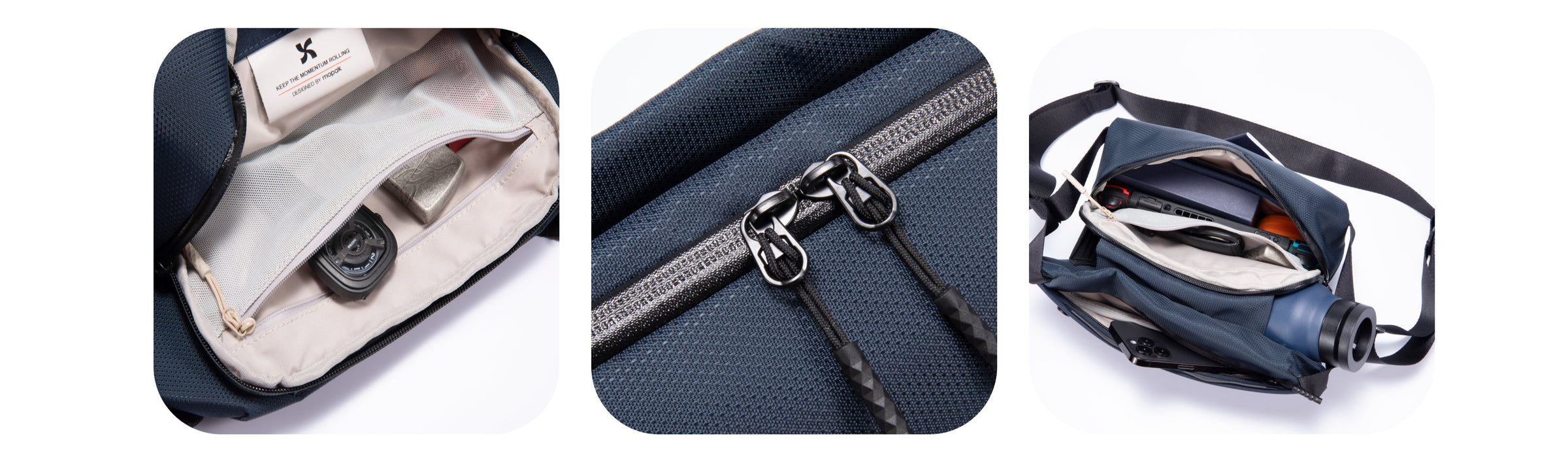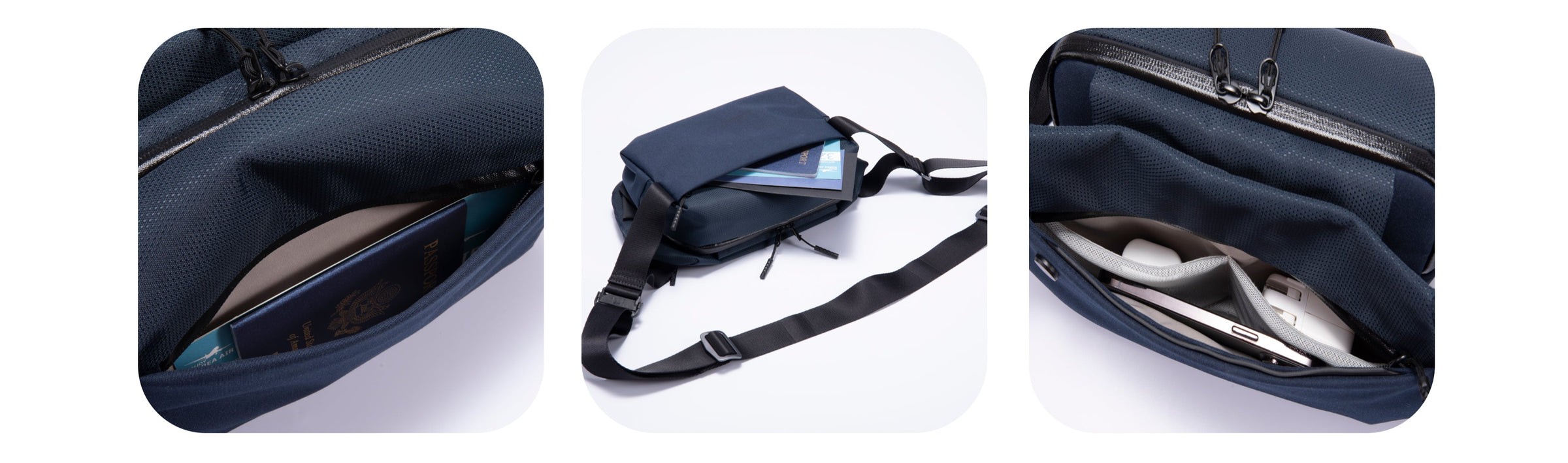 タフな撥水素材、必要なものにすぐアクセス。街歩きからアウトドアまで、あらゆるシーンに最適。