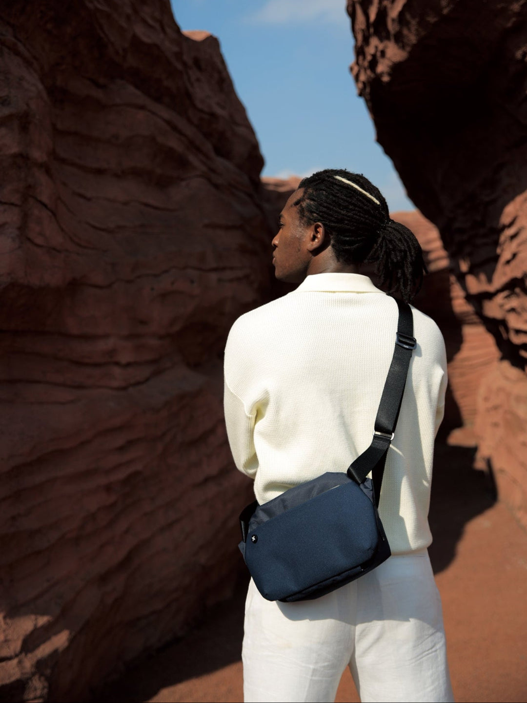 軽量でスタイリッシュなスリングバッグに、必要なものをすっきり収納。シーンを選ばず活躍する、日常使いに最適なデザインです。