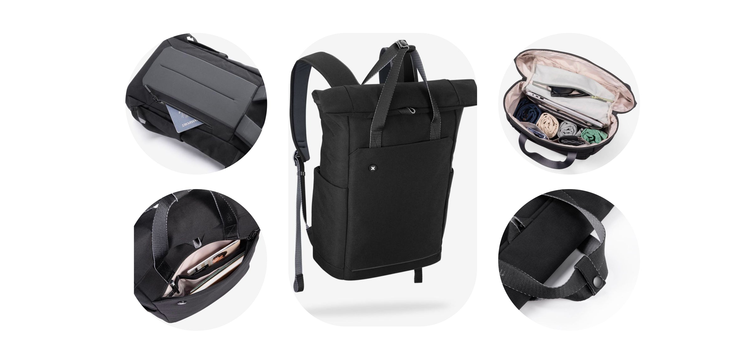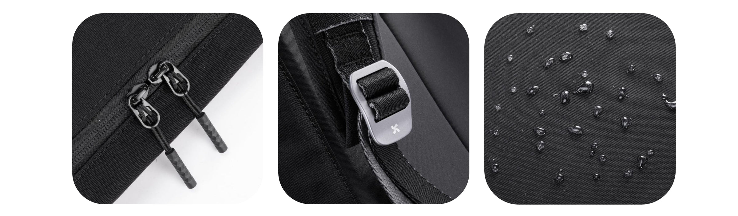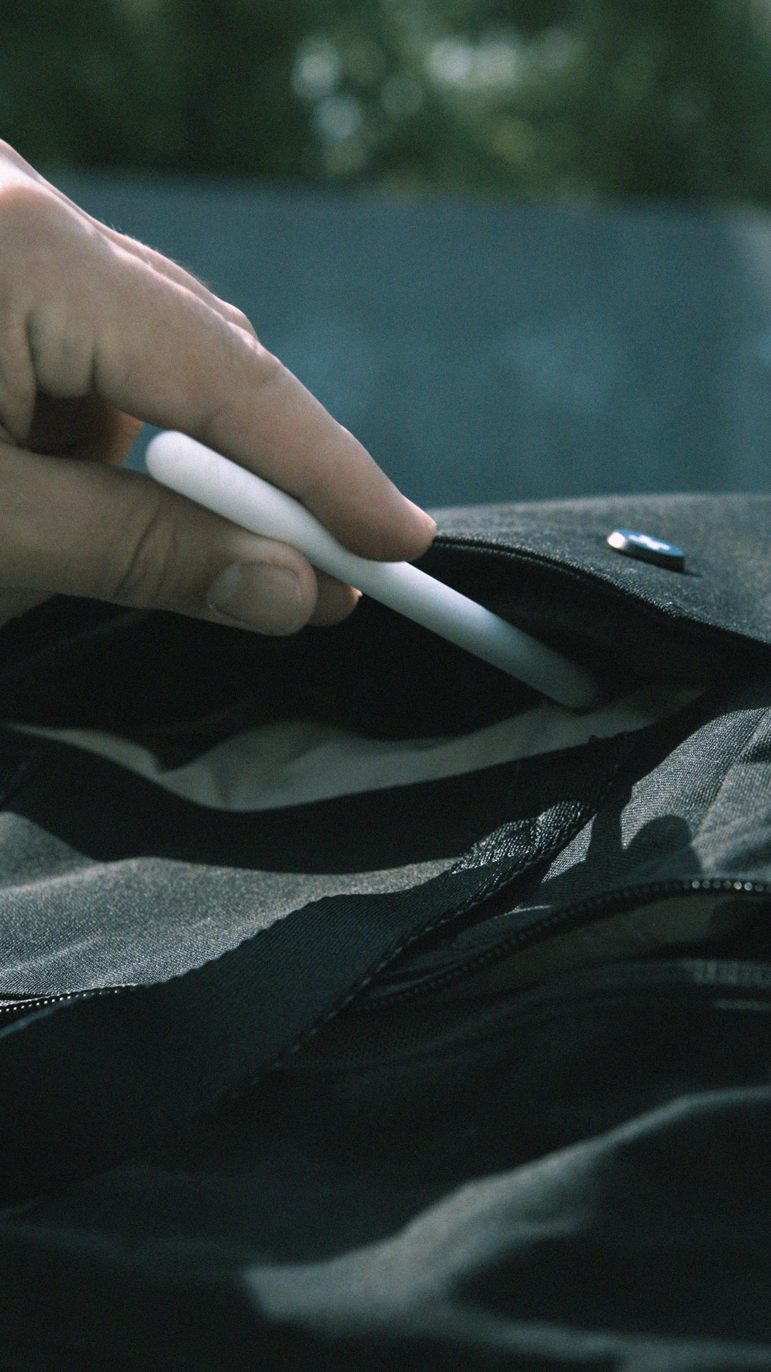 このバッグは撥水性のリサイクルポリエステル生地でできています。
